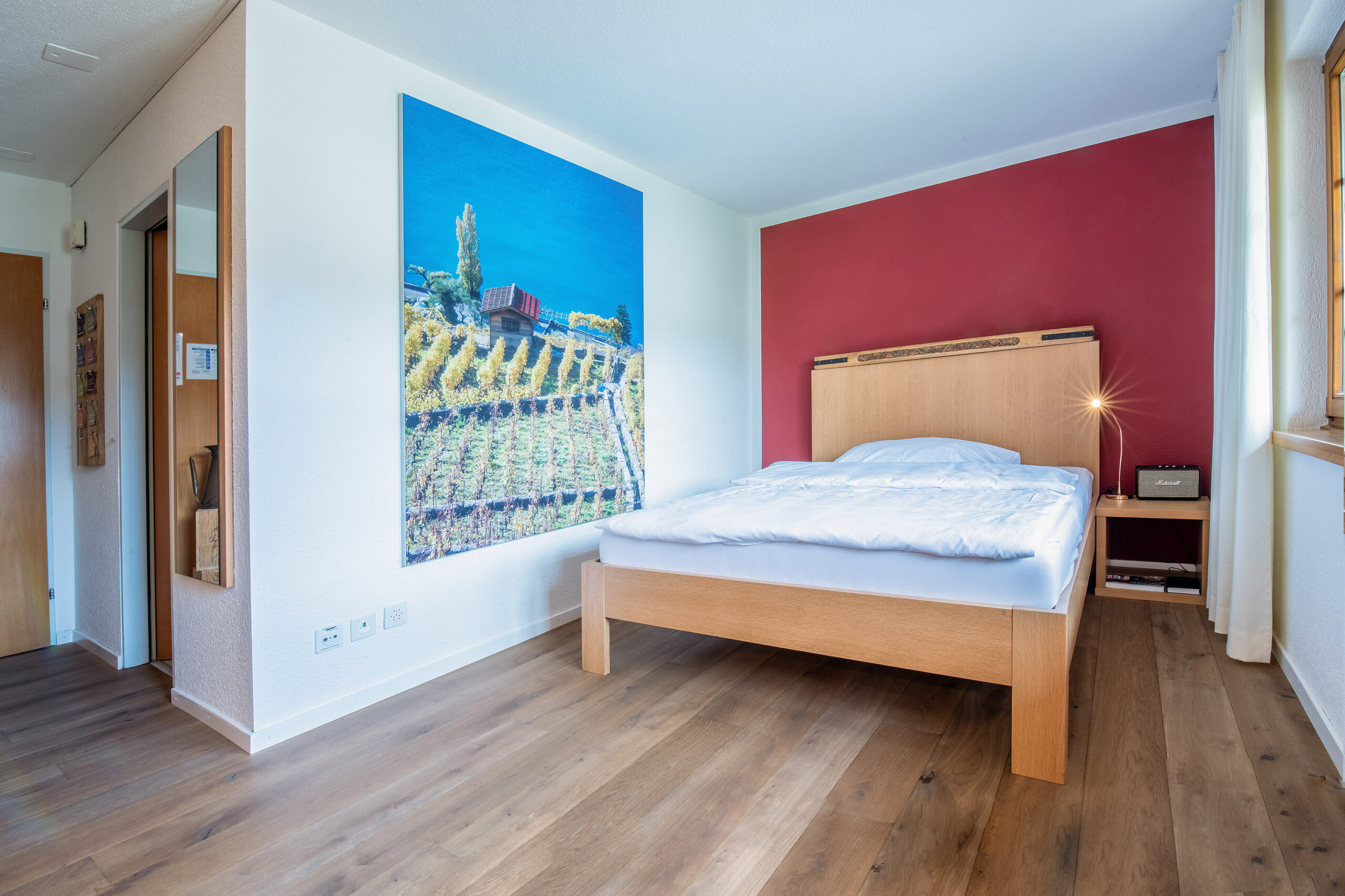 Das Winzer Queen Zimmer liegt im 1. Stock, ist 20 m2 gross und geht zum Hof