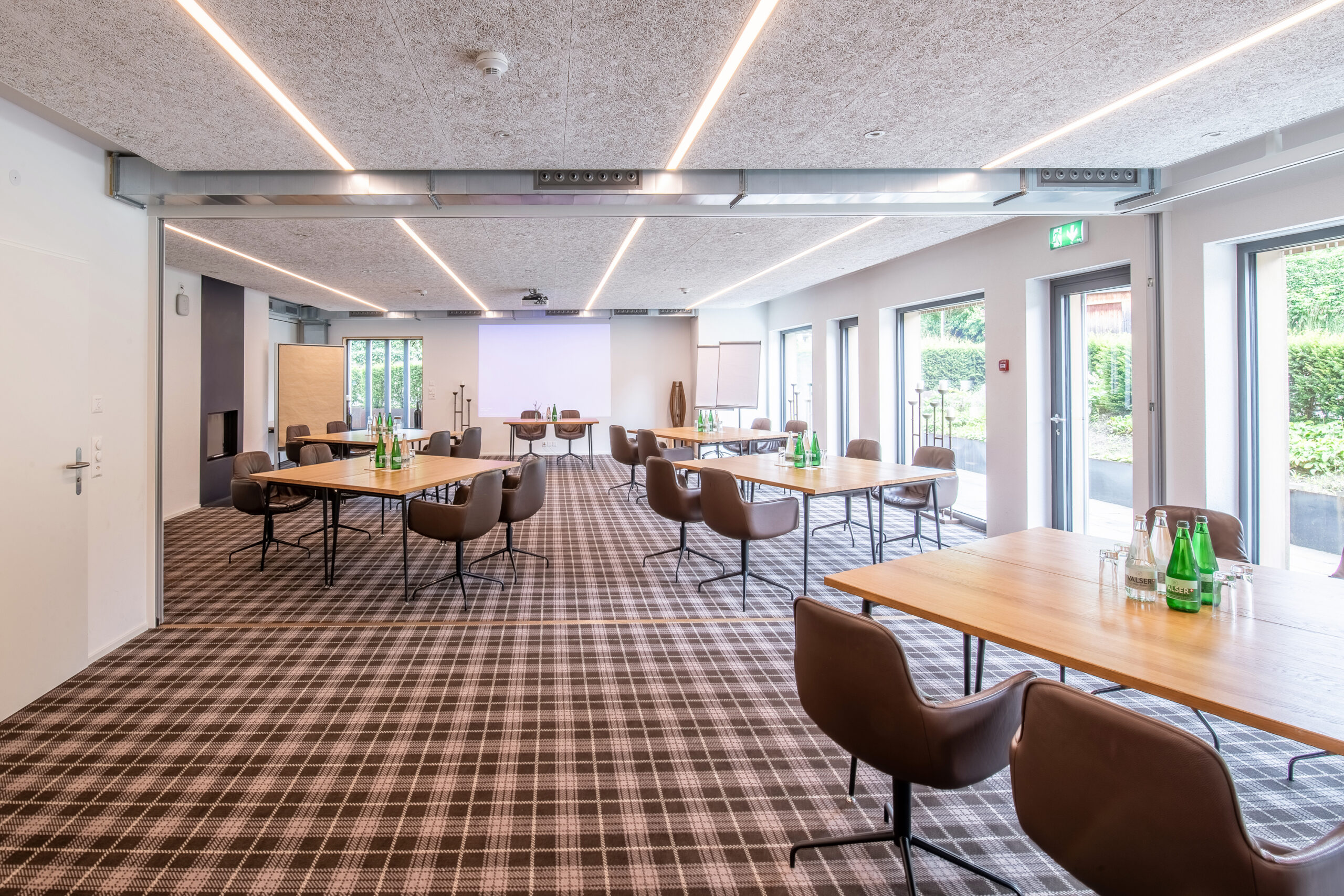 Wenn der Plenarraum unterteilt wird, steht Ihnen dieser 40 m² grosse, moderne Raum mit viel Sonnenlicht als eigenständiger Gruppenraum zur Verfügung.